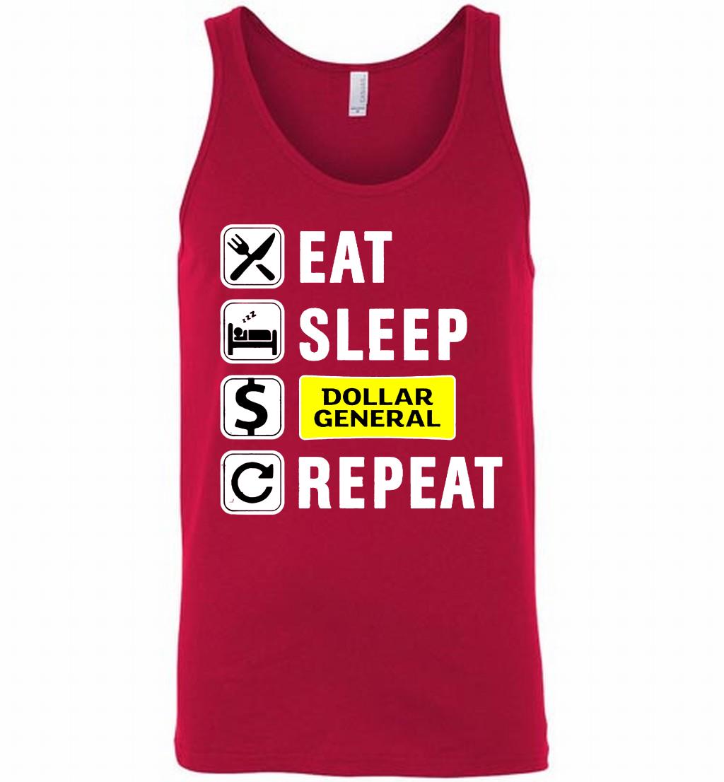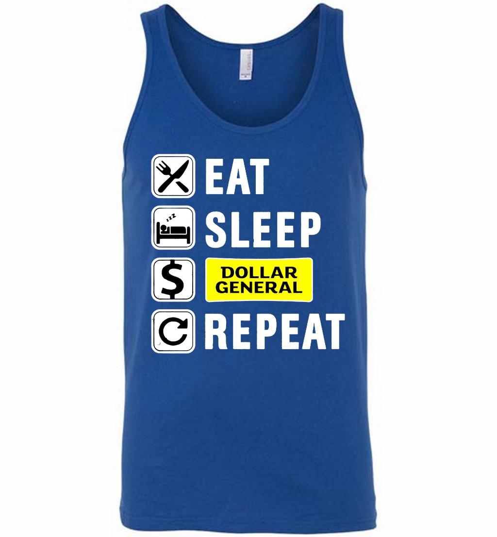 Eat Sleep Dollar General Repeat Tank If you are looking for a good T-shirt with a beautiful design, consider our shop. We always supply products with the best high quality items. We also offer great printing quality with the best price in USA. The creativity of our artists will give you great T-shirts. Of course, it would be a perfect gift for your family members, your lover, your friends,... on the the anniversarys. We offer many different styles to choose:T-Shirt, Tank, v-neck,hoodie, long shirt...
