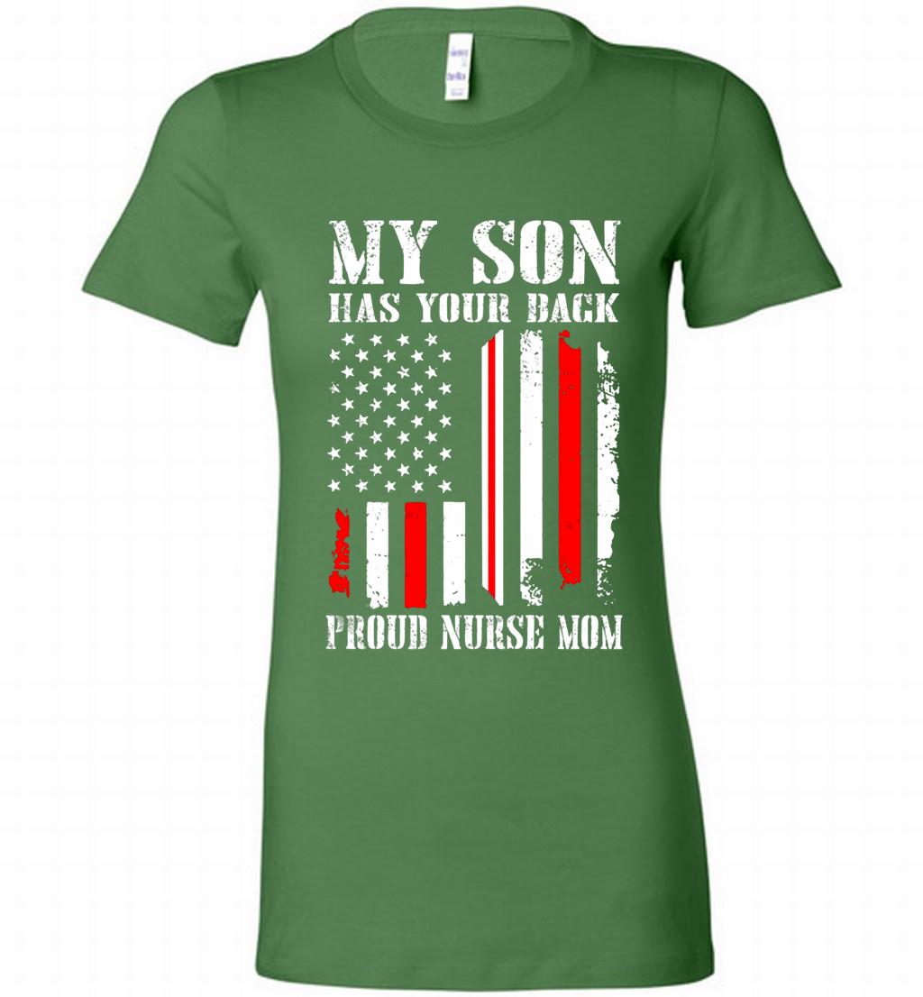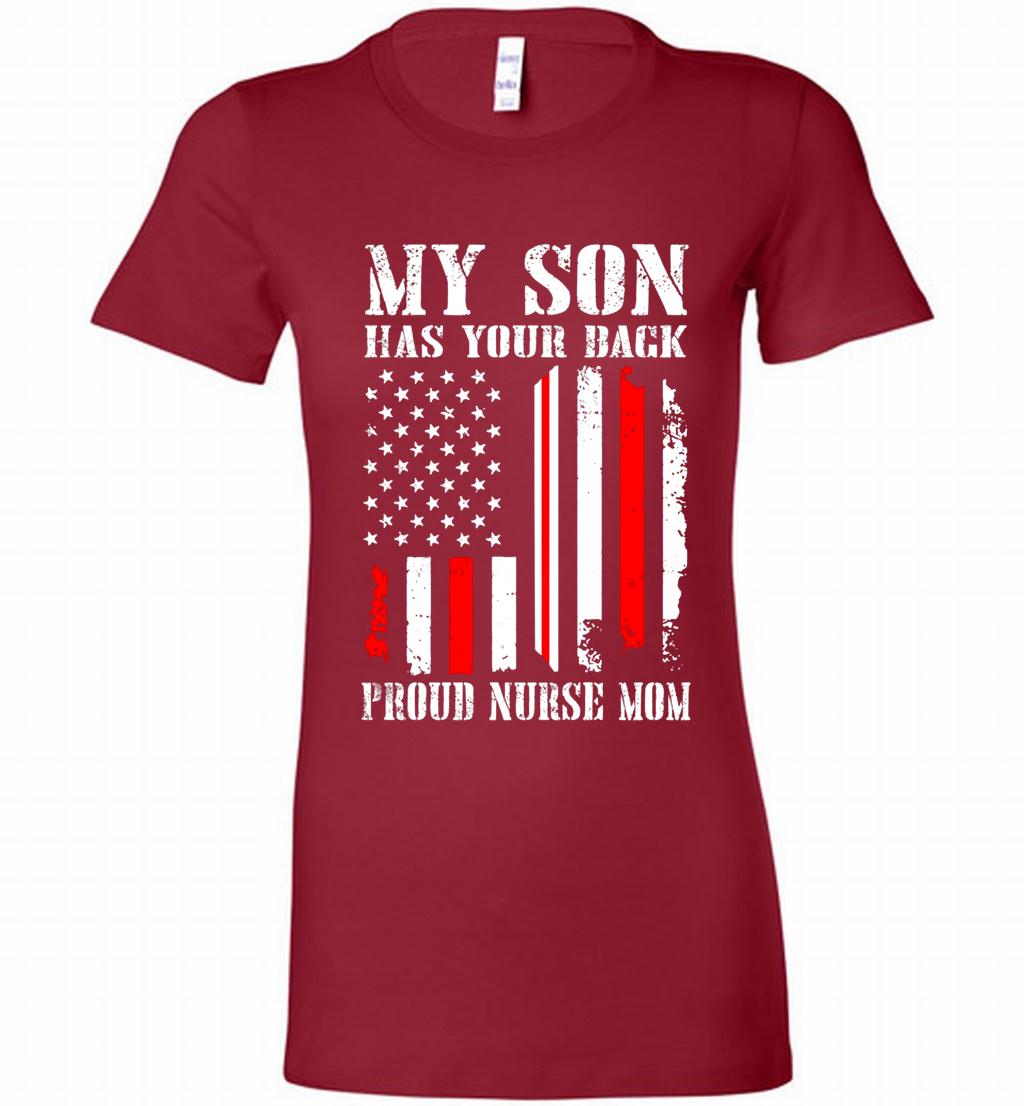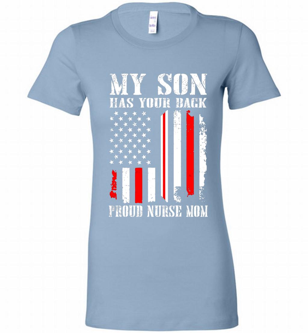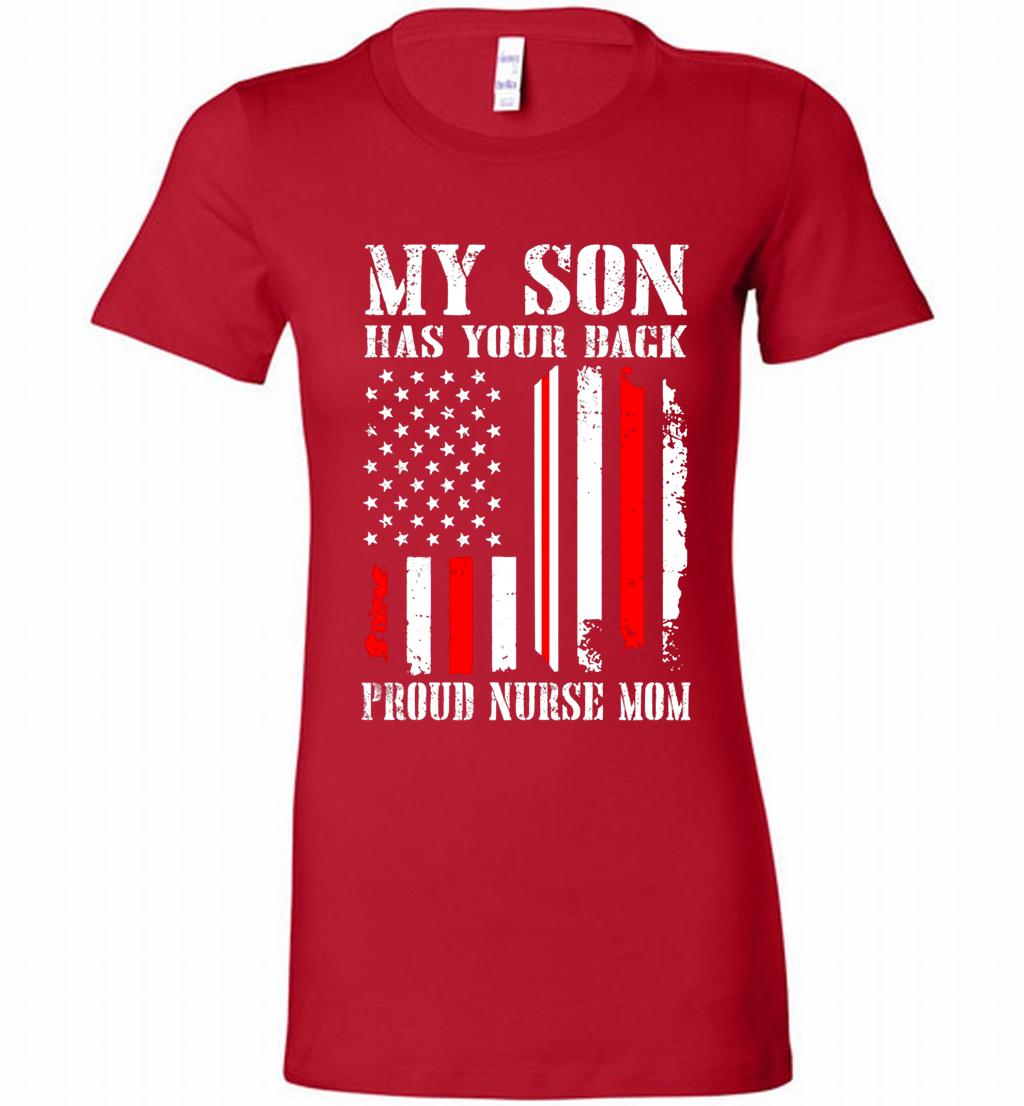 My Son Has Your Back Proud Nurse Mom Bella Ladies Tee 100% Cotton, 4.3oz - Made In USA