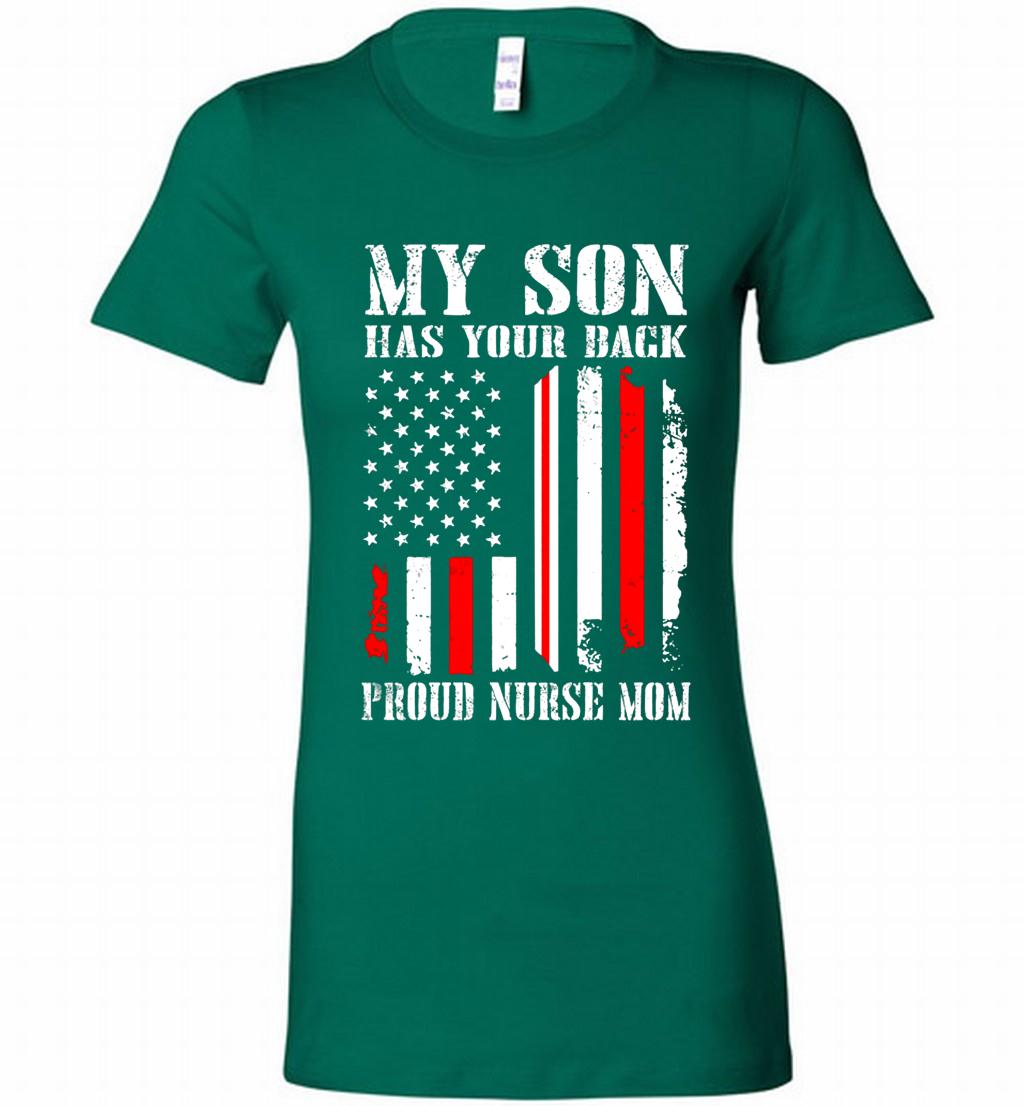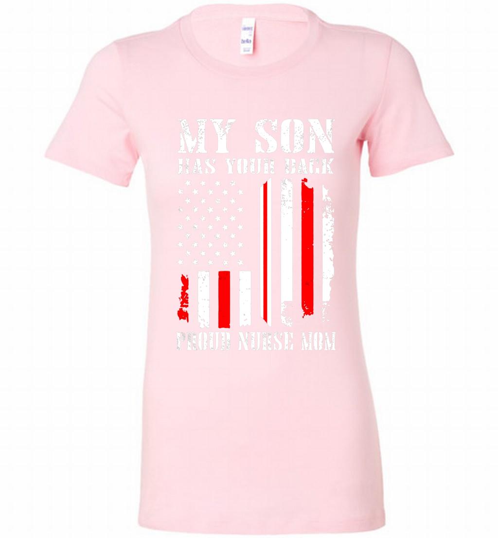 My Son Has Your Back Proud Nurse Mom Bella Ladies Tee