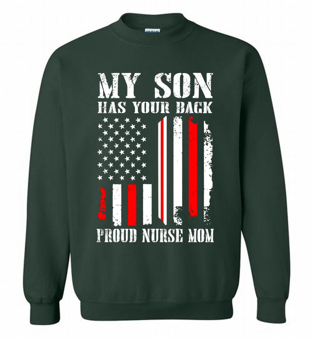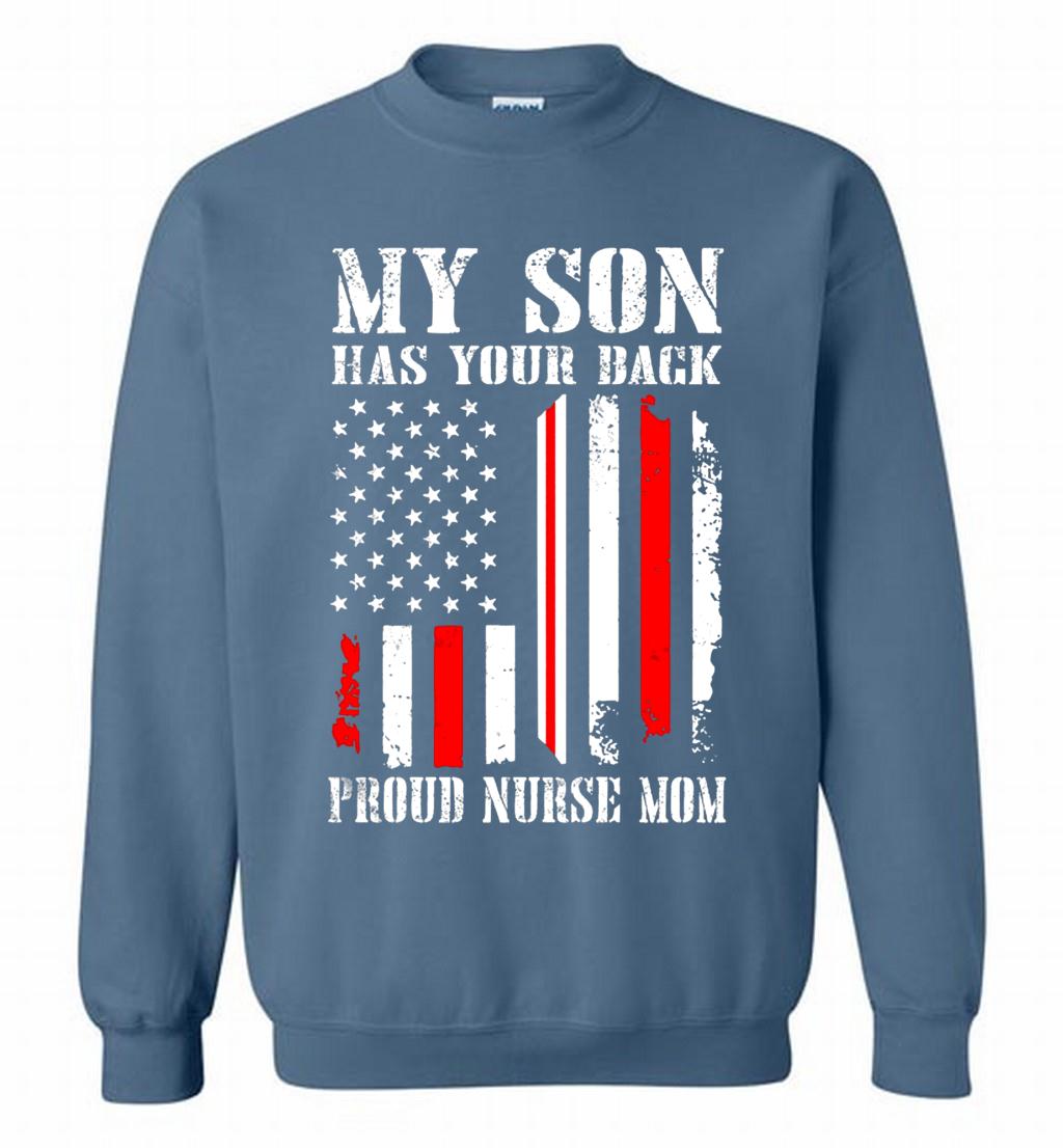 My Son Has Your Back Proud Nurse Mom Crewneck Sweatshirt 100% Cotton, 4.3oz - Made In USA