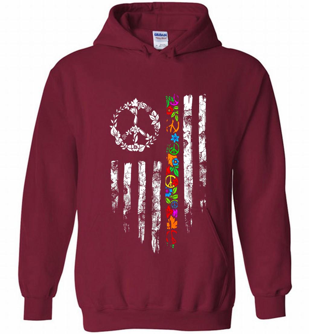 Peace flower American flag Hoodie 100% Cotton, 4.3oz - Made In USA