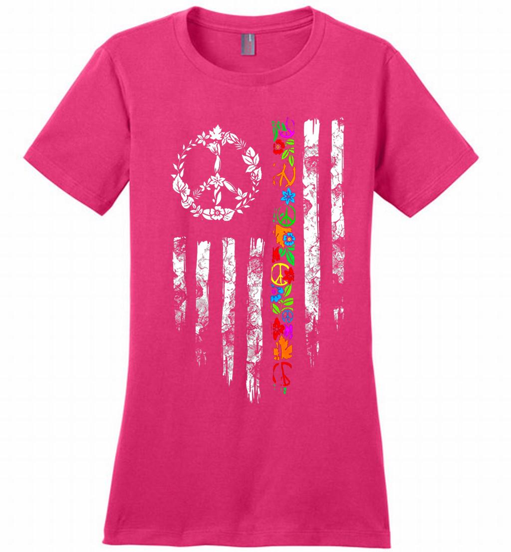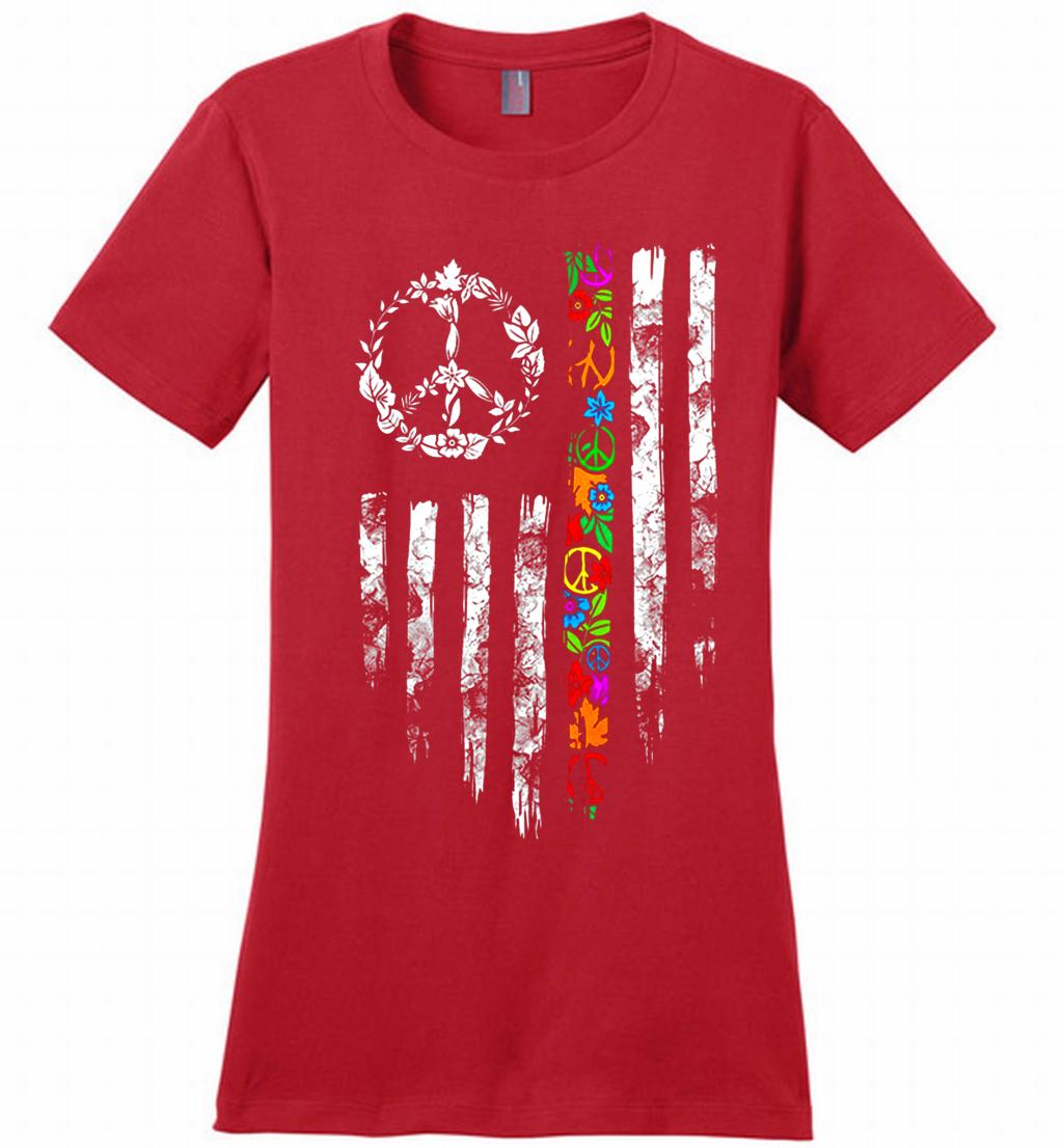 Peace flower American flag Ladies Perfect 100% Cotton, 4.3oz - Made In USA