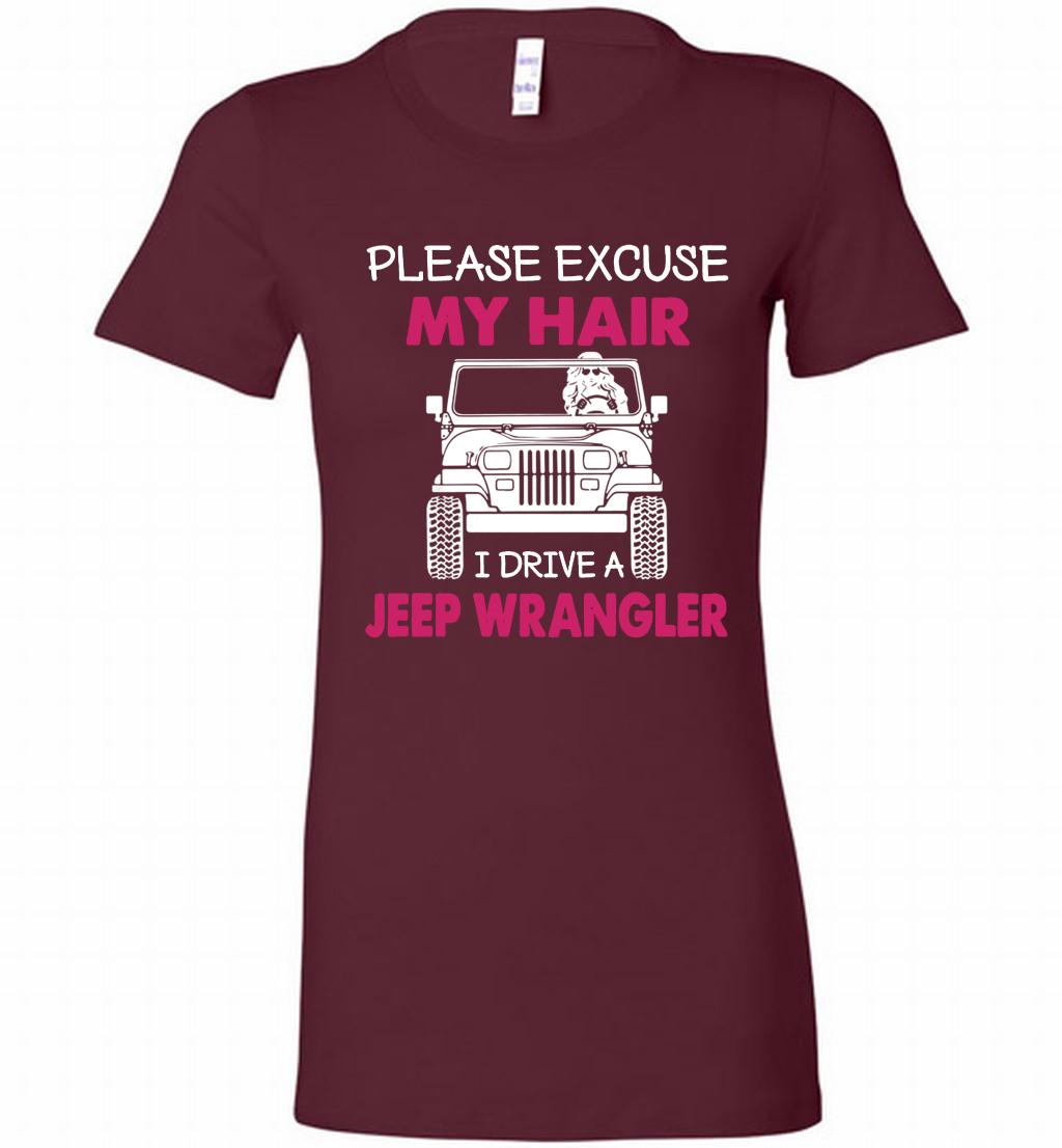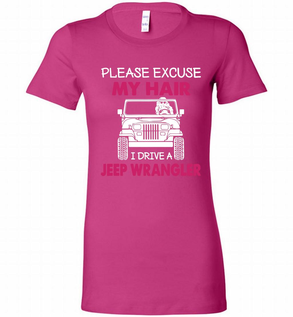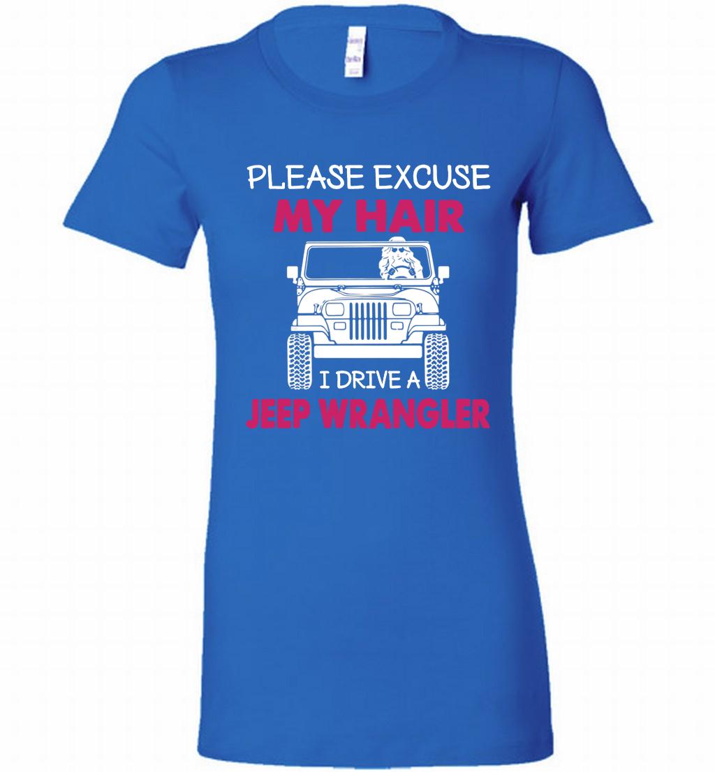 Please Excuse My Hair I Drive A Jeep Wrangler Bella Ladies Tee