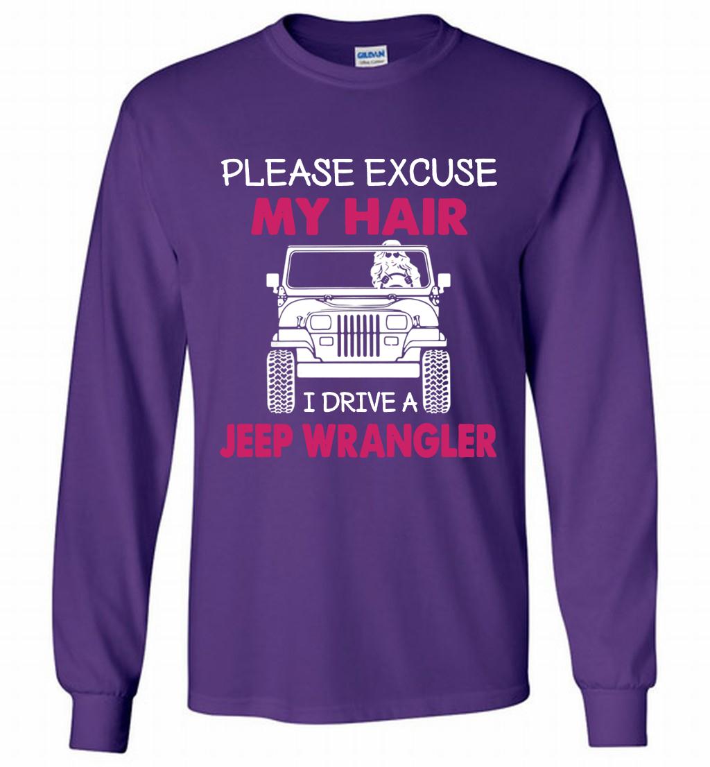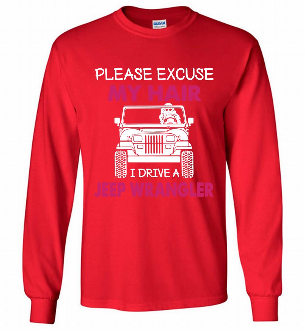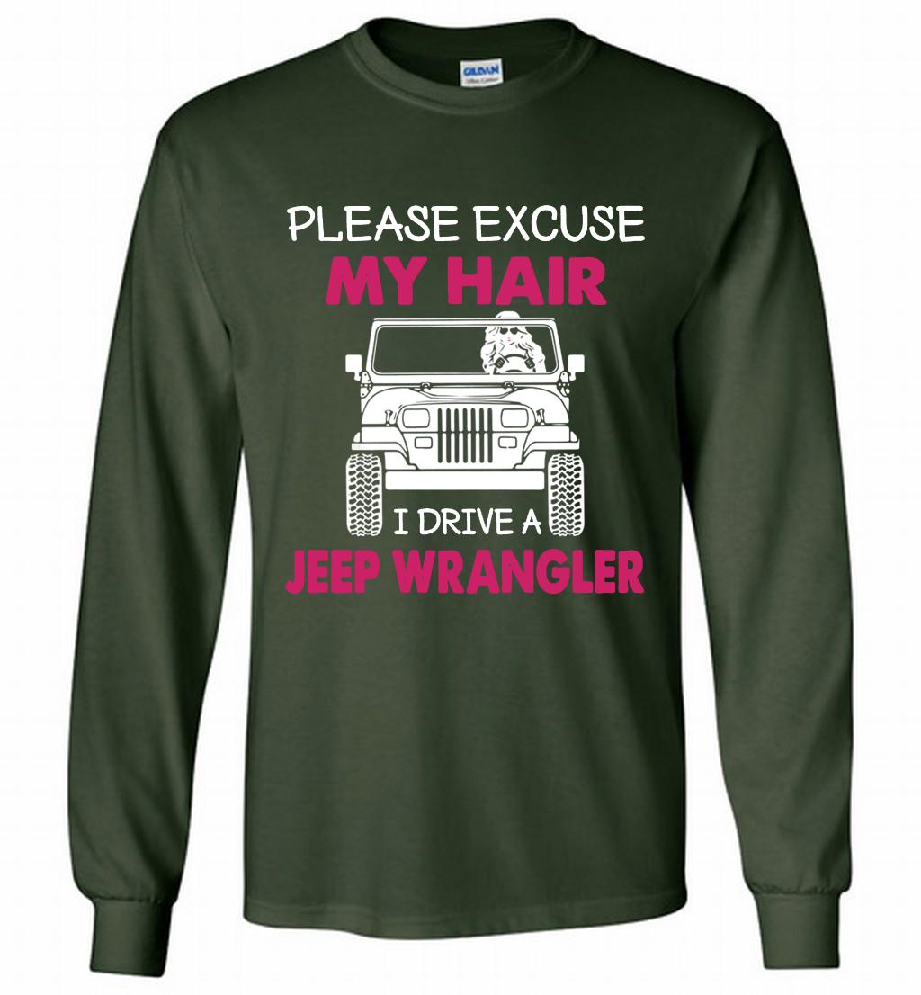 Please Excuse My Hair I Drive A Jeep Wrangler Gildan Long Shirt